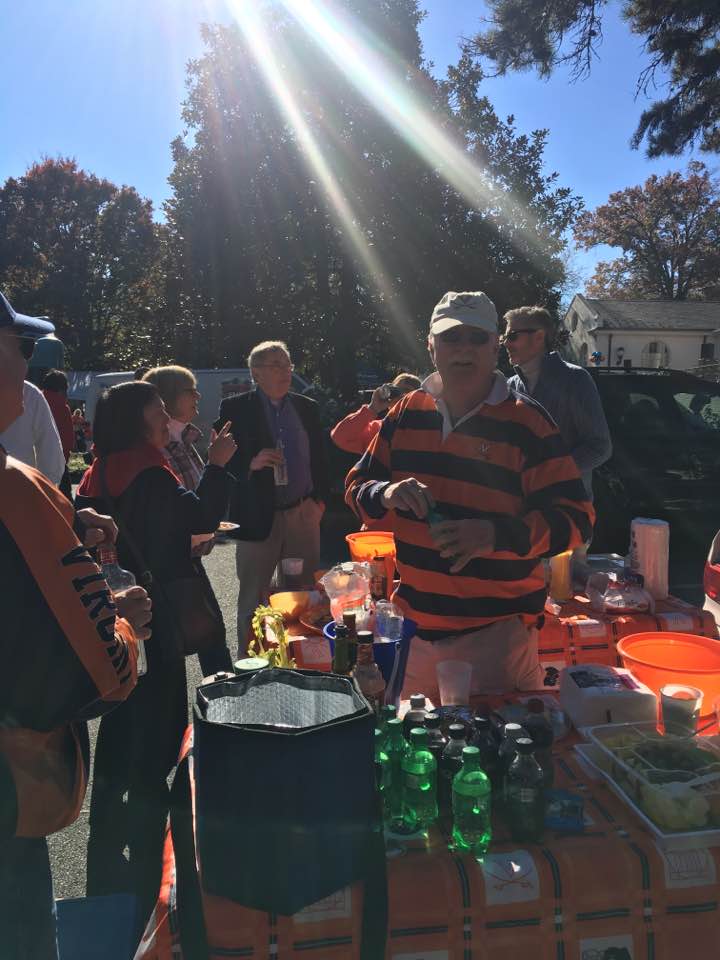 Seven former CD Sports Editors at the 2015 football game against Duke, Nov. 21. Back row, left to right, Larry Appel, Allen Irish, Mike Shapiro, Bill Rittenberg. Front row, Kip Coons, Mark Brown, Larry Cohen. They were sports editors from 1974-1982. Appel (editor in chief) and Shapiro (business manager) would serve on the managing board in 1982-83 after their tenure as sports editors. Photo from Kip Coons.